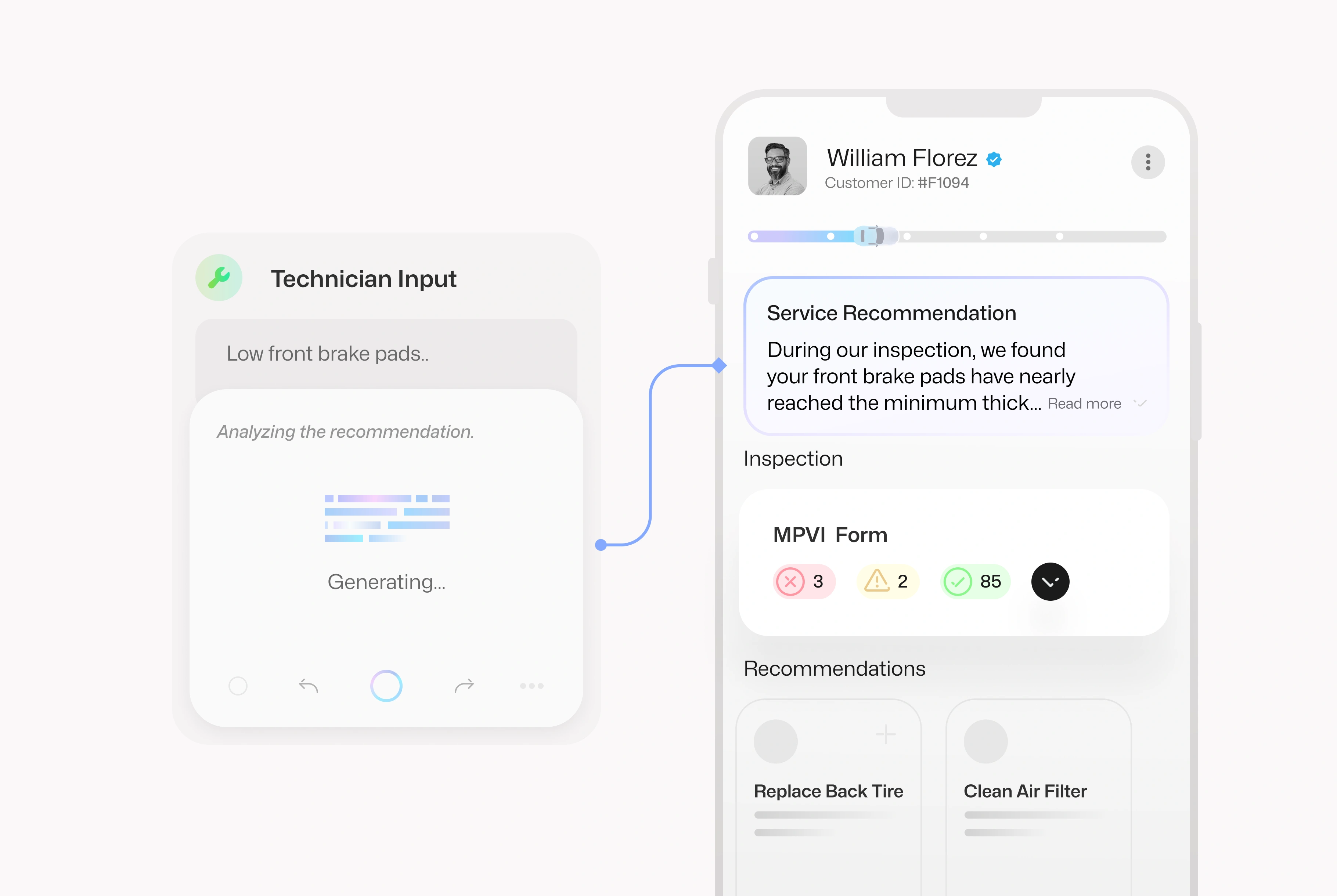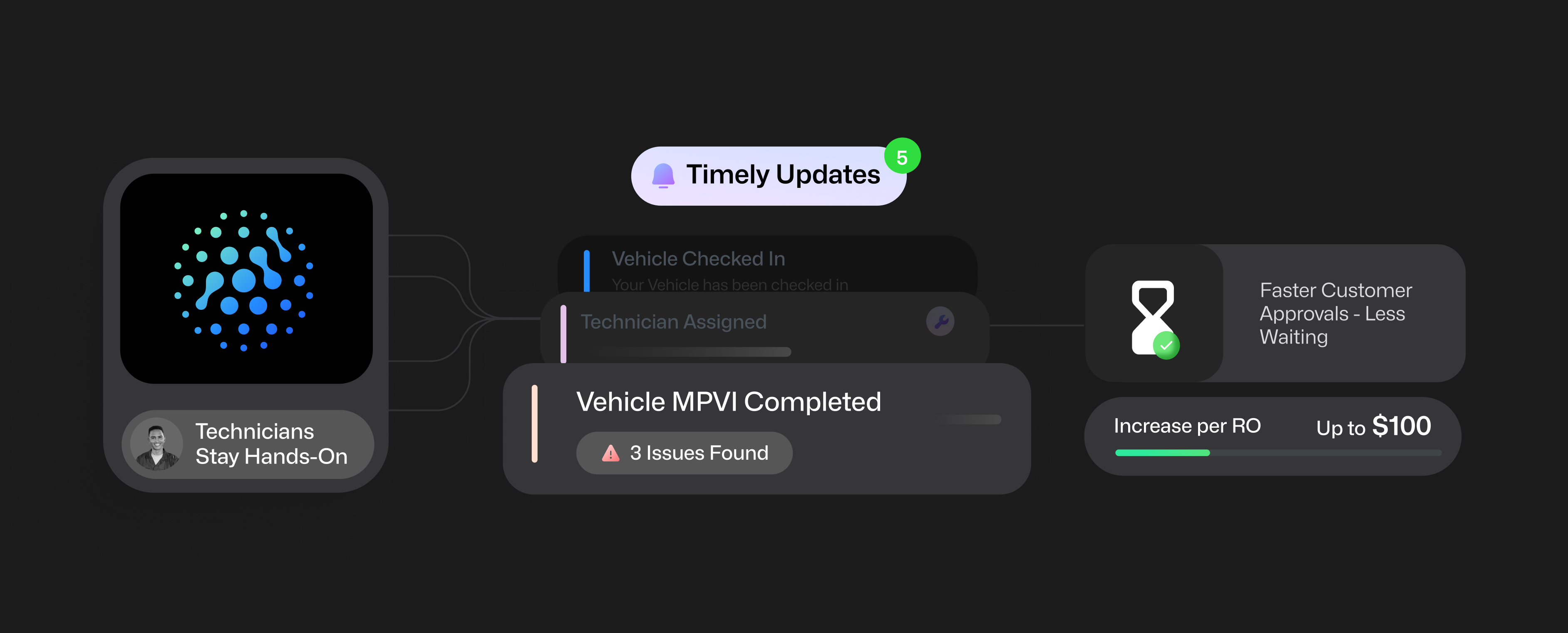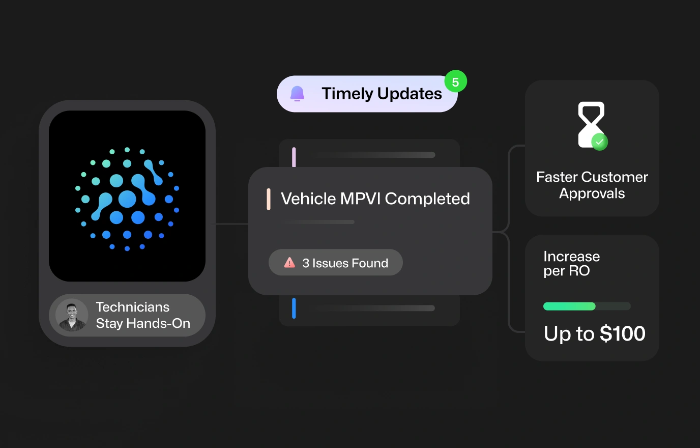 Purpose-built for dealerships to remove friction on the service drive—automating slow, manual tasks, informing customers of recommendations that can keep them safe, and alerting them of repair status.