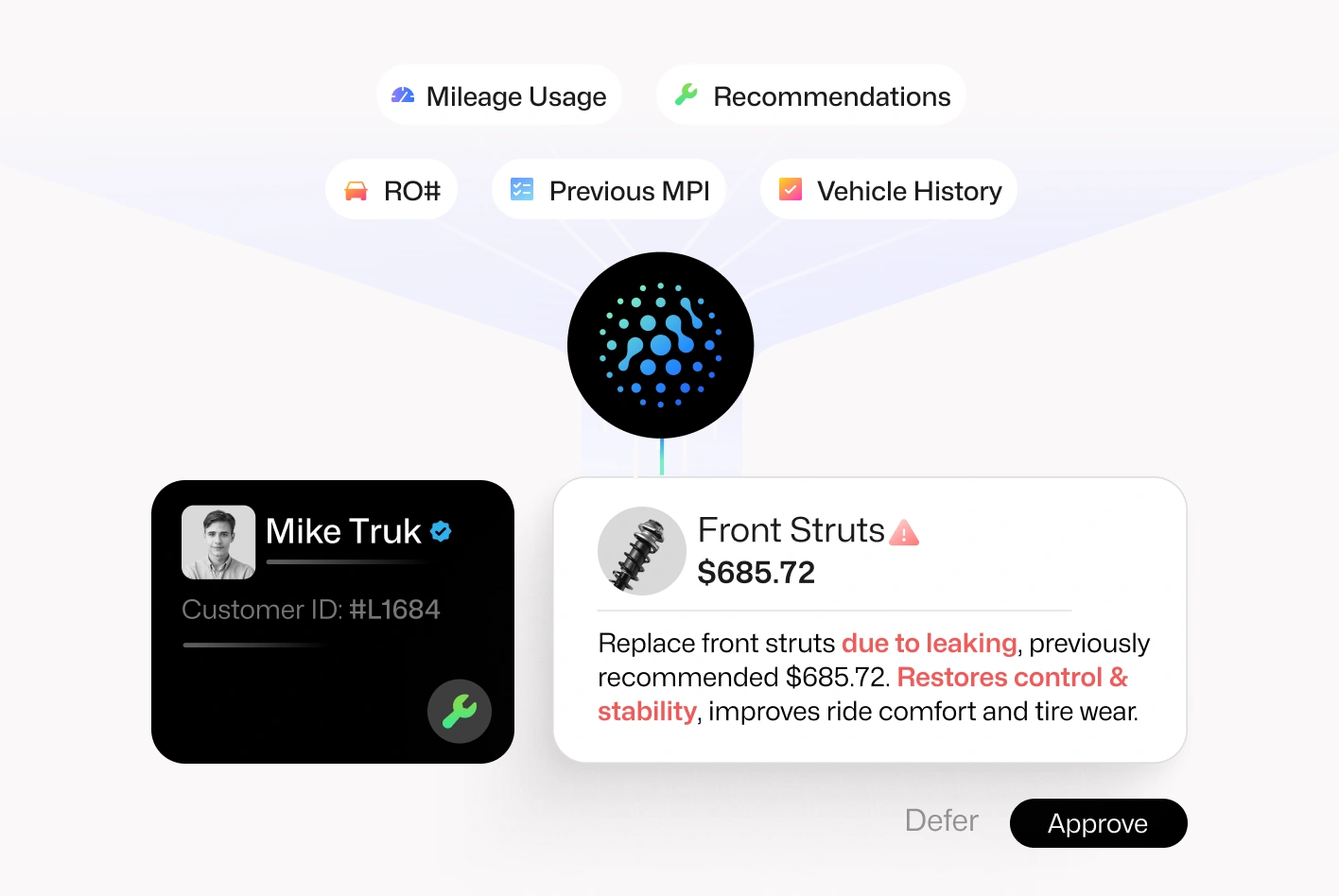 Eliminates repetitive tasks—like rewriting tech notes, chasing approvals, and closing routine ROs—so advisors can stay focused on the customer.