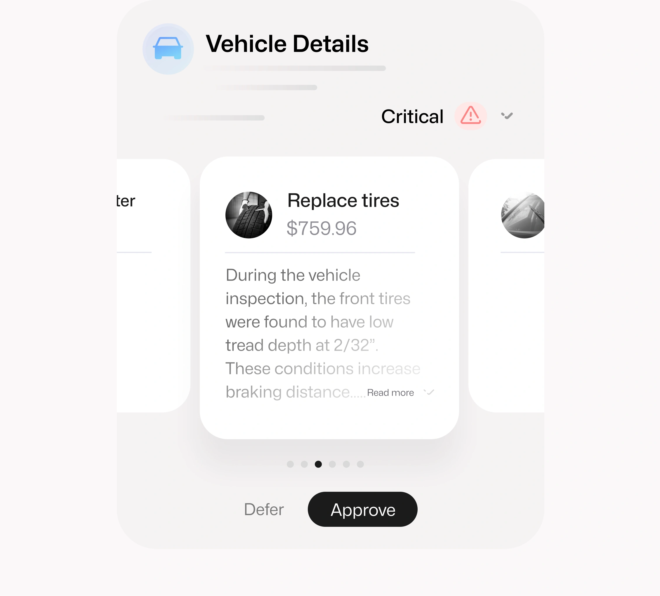 Delivers AI-enhanced recommendations based on VIN, <xdt>history, and inspection data - keeping safer cars on the <xd>road.